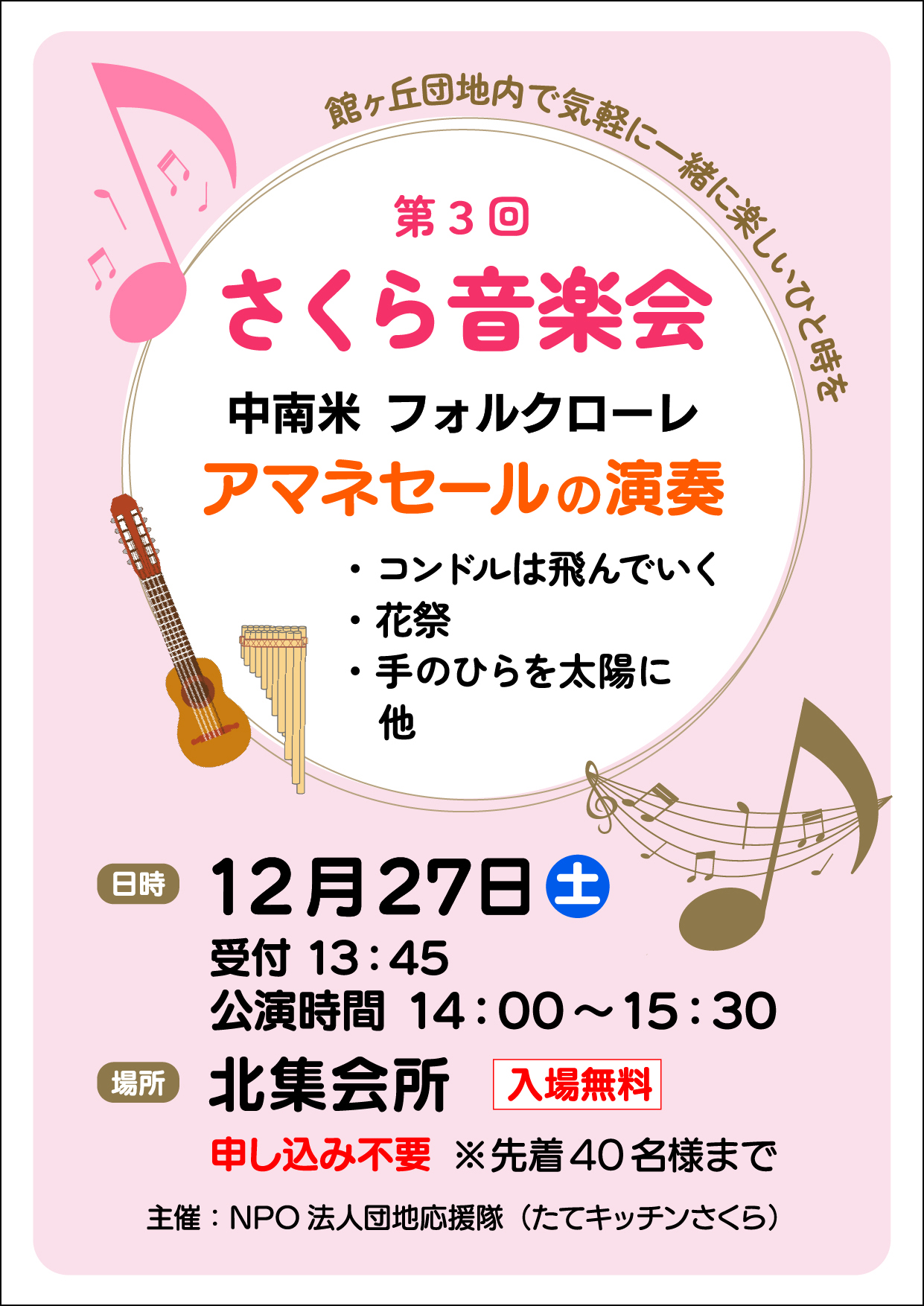 12/27(土)さくら音楽会『中南米フォルクローレ』