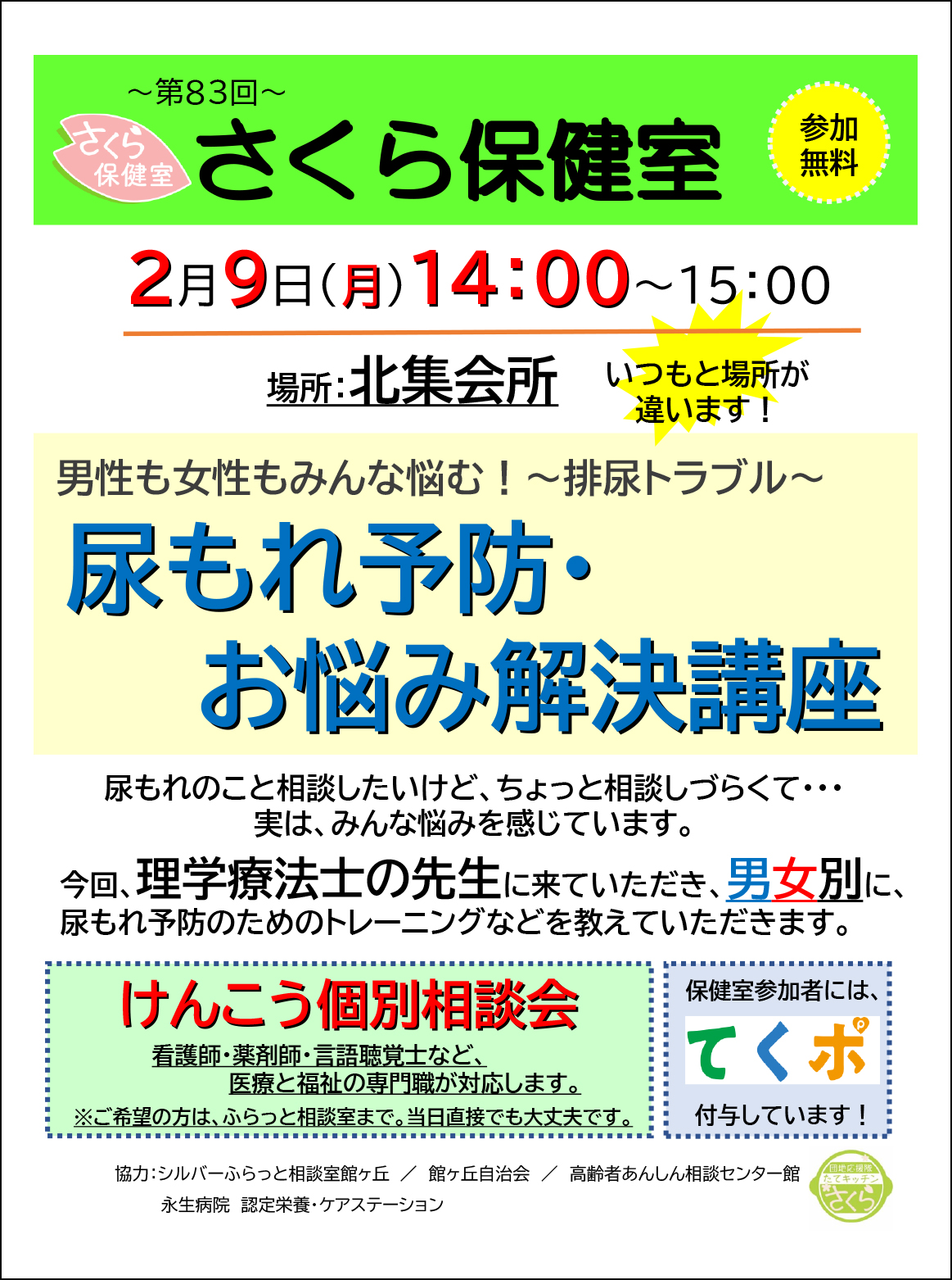 2/9(月)さくら保健室【尿もれ予防・ お悩み解決講座】
