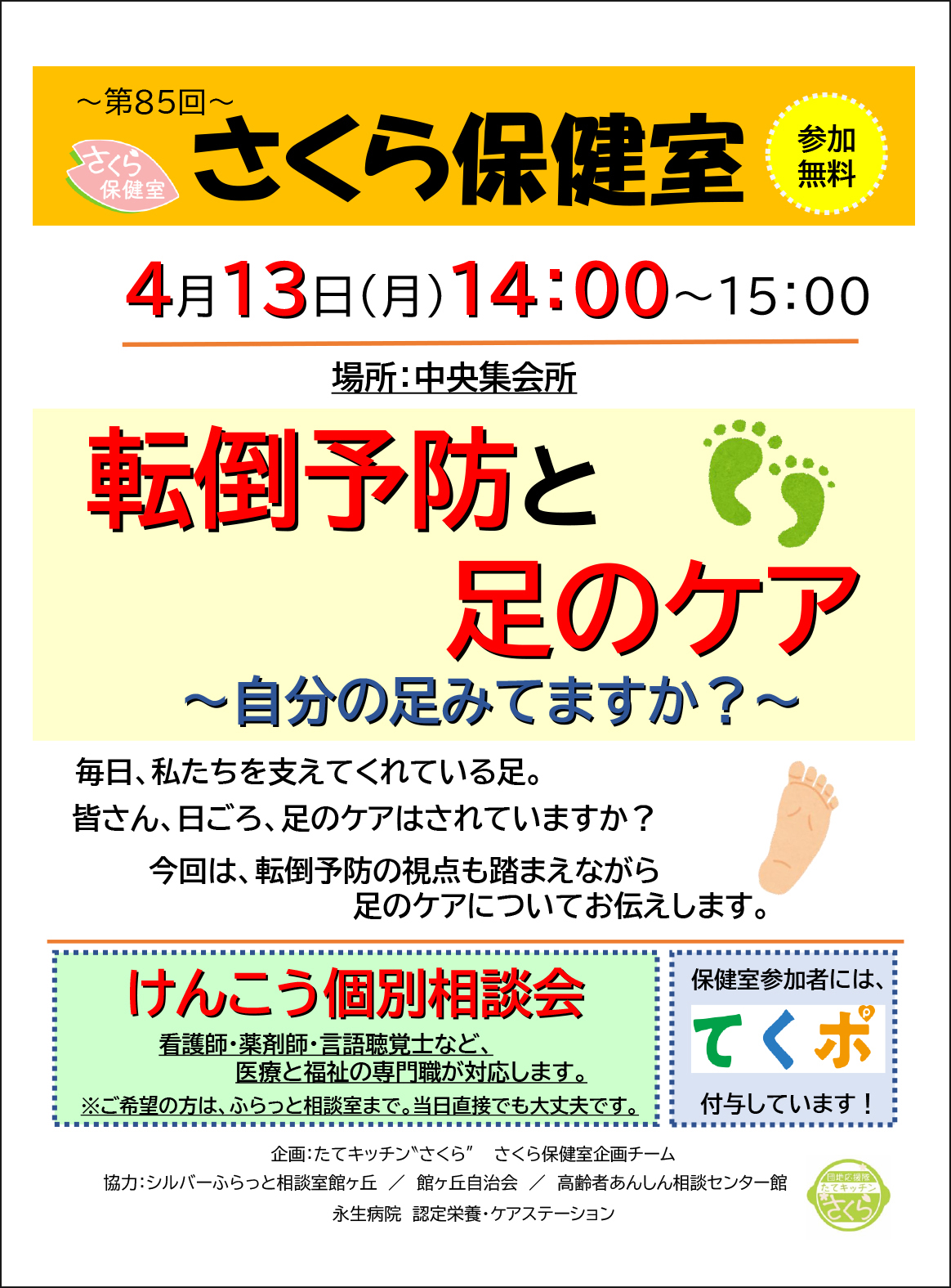 4/13(月)さくら保健室【転倒予防と足のケア】